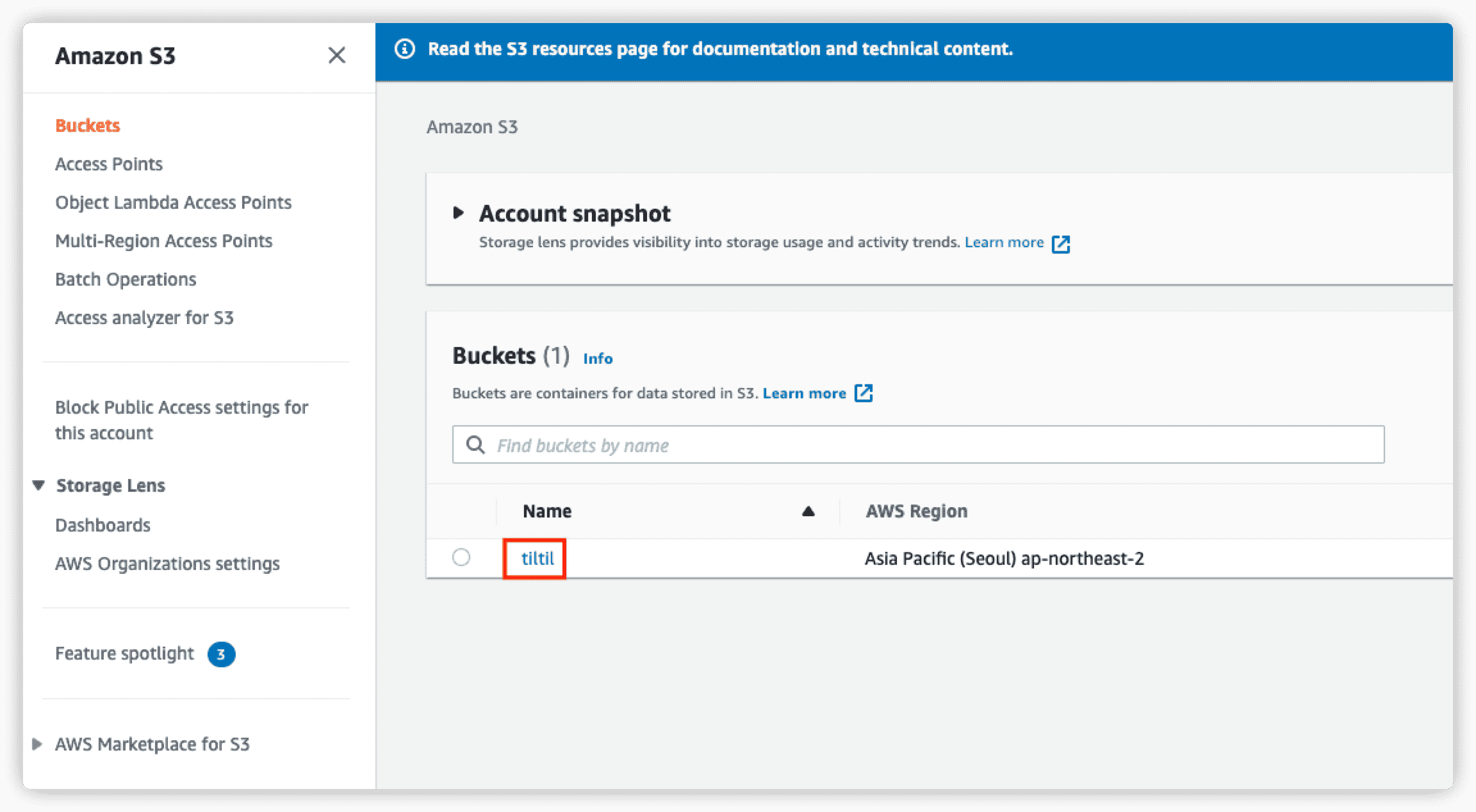 - S3 버켓 이름을 그대로 작성하면 된다.