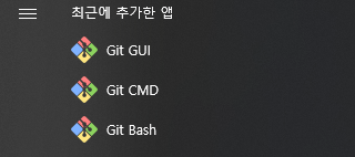 설치가 완료되었다면 시작 메뉴에서 아래와 같이 Git 프로그램이 PC에 설치된 것을 확인할 수 있다.