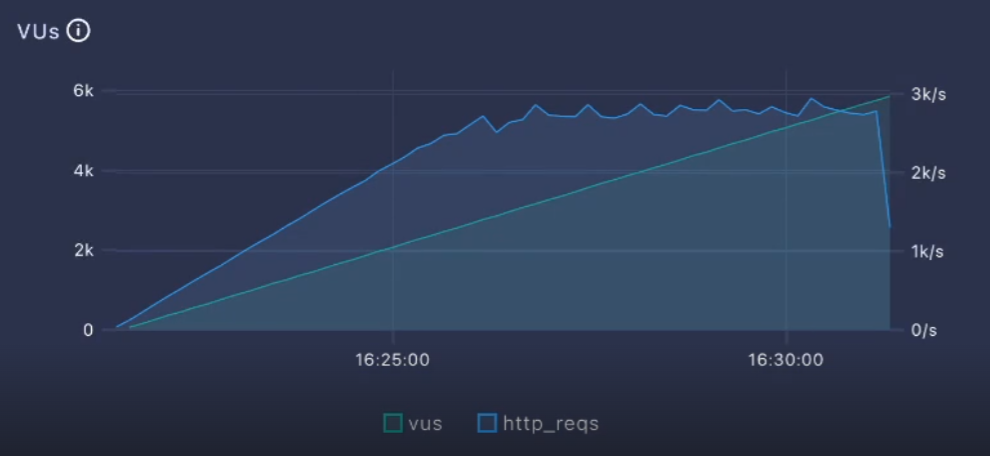 http_reqs이 수평선이 될때까지 부하테스트 실행