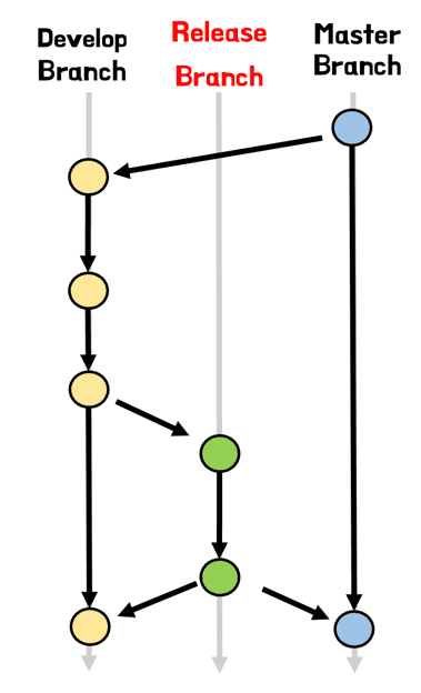 - develop브랜치에서 어느정도 개발이 완료된다면 release브랜치를 생성하여 QA를 진행합니다. release 브랜치에서 발생한 버그들은 release브랜치에서 수정을 합니다.